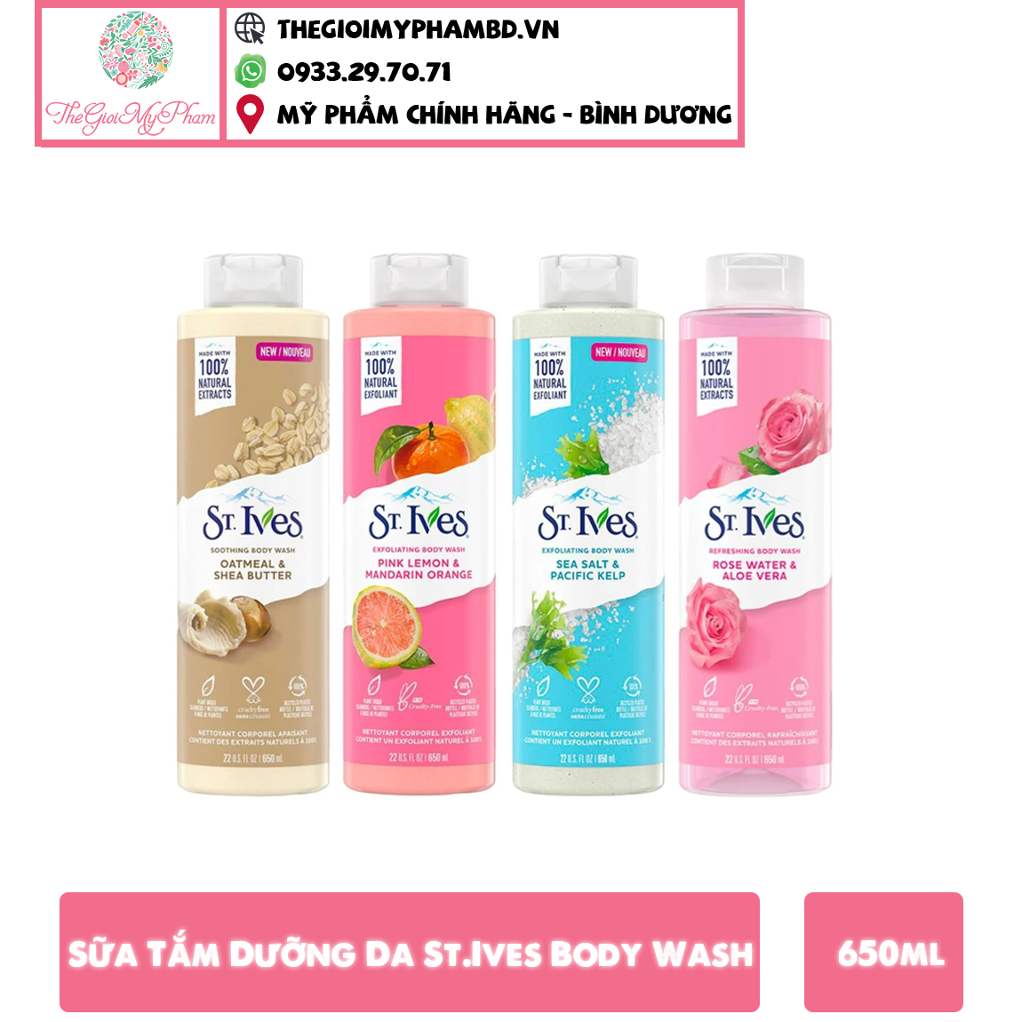 Hiện sản phẩm Sữa Tắm St.Ives Dưỡng Da đã có mặt tại TGMP với 5 loại và 2 dung tích khác nhau: