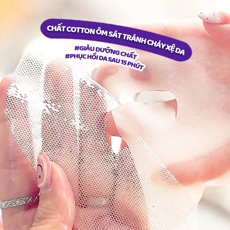 - Bước 2: Lấy mặt nạ ra khỏi bao bì và đắp đều lên khuôn mặt.
