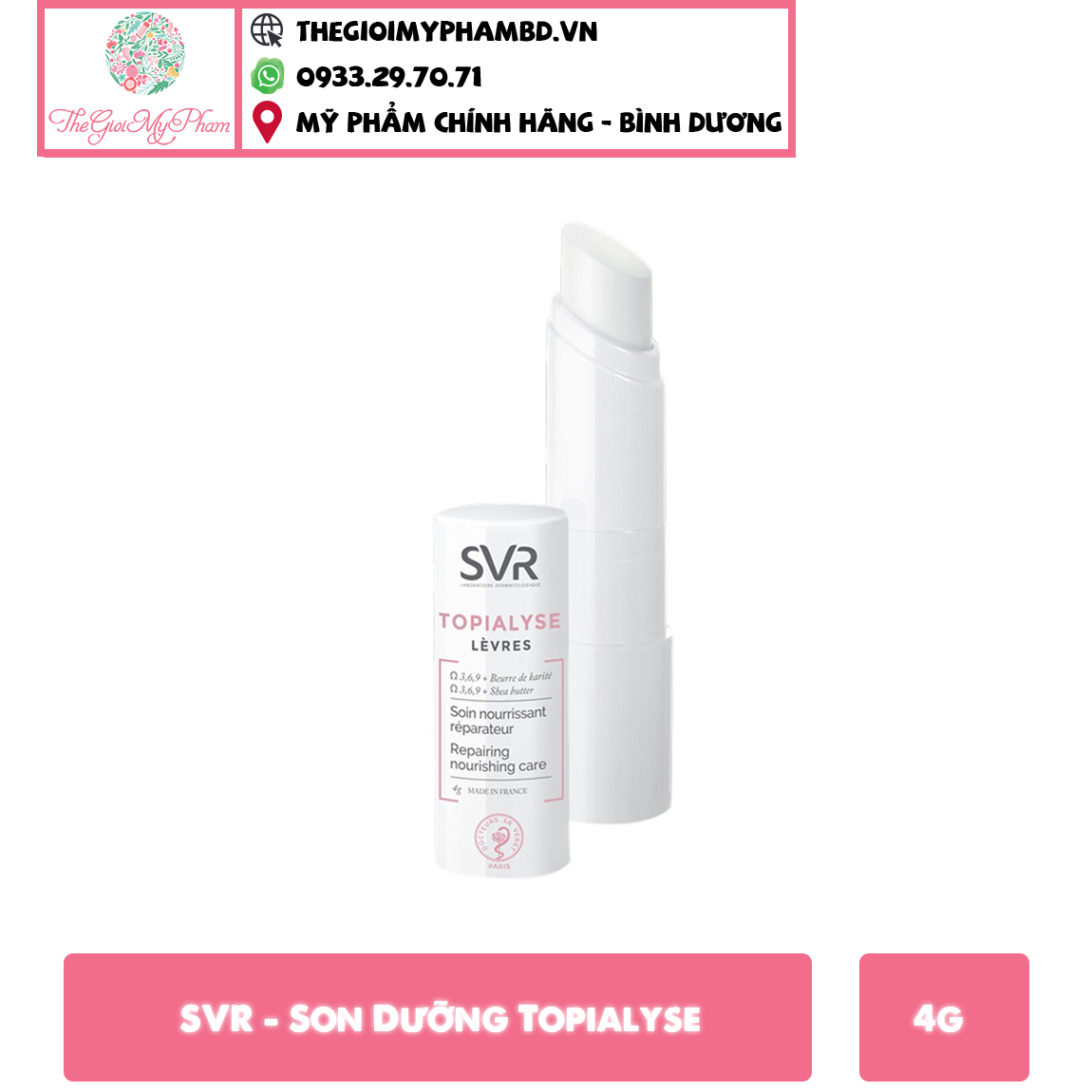 Sáp Dưỡng Môi SVR Topialyse Levres Giúp Nuôi Dưỡng Và Dưỡng Ẩm Môi Bị Khô, Nứt Nẻ Và Tổn Thương là sản phẩm thuộc thương hiệu dược mỹ phẩm SVR (Pháp), thích hợp cho da môi nhạy cảm.