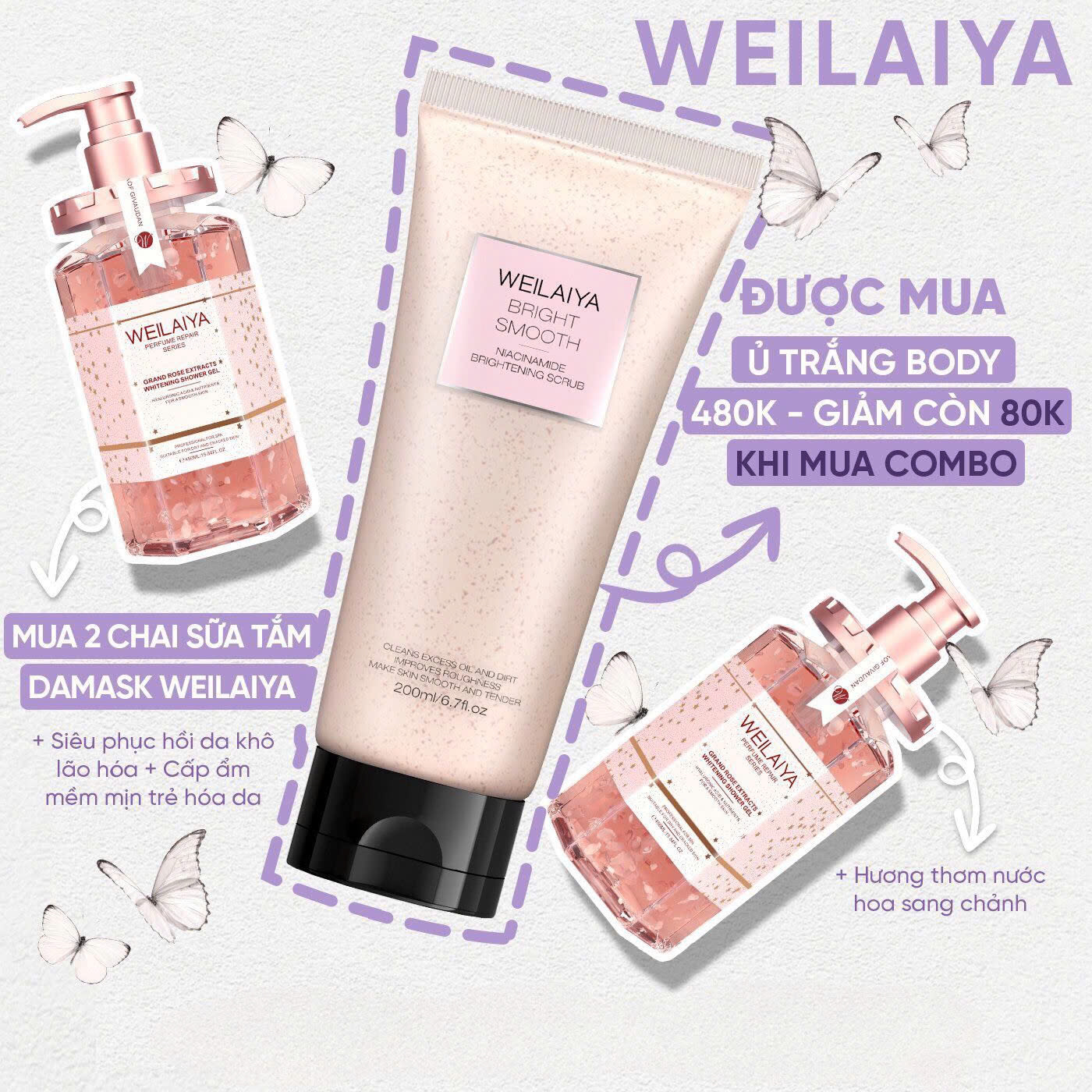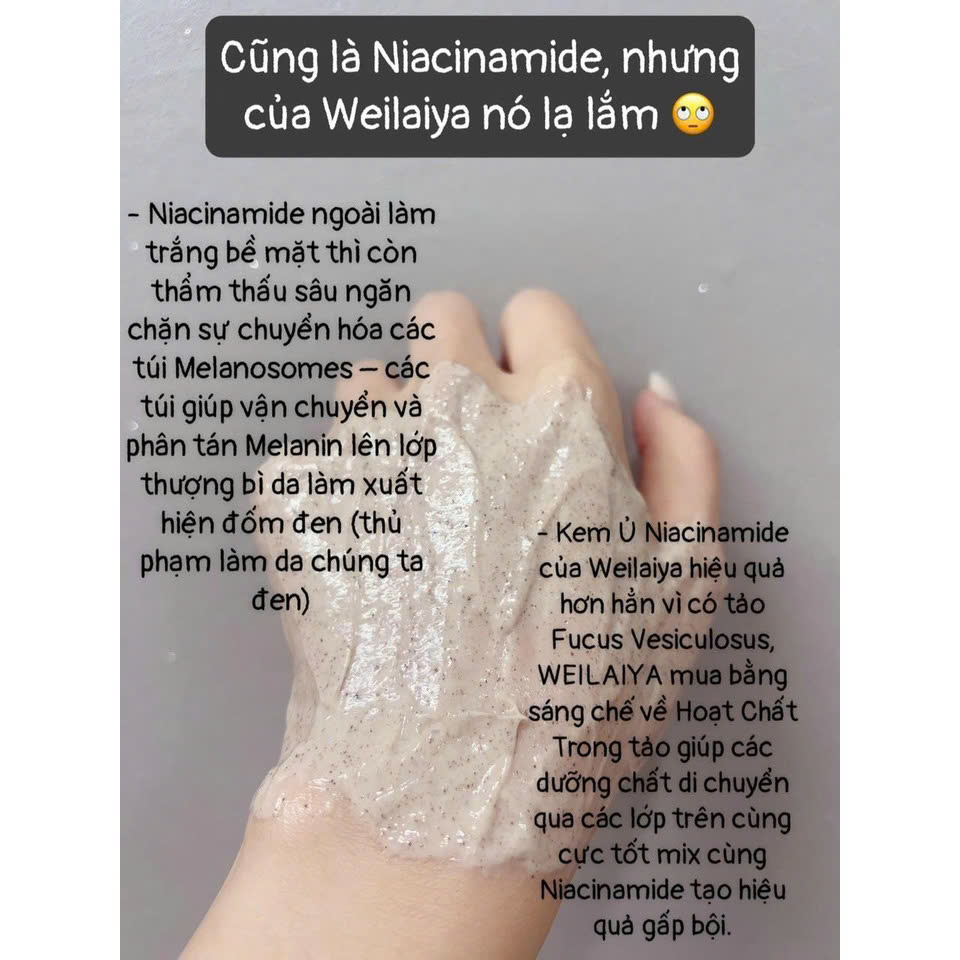 Kem tẩy tế bào da chết body Weilaiya Niacinamide Brightening Scrub giúp nhẹ nhàng lấy đi lớp sừng già cỗi bên trên bề mặt da, trả lại cho làn da sự tươi sáng và mịn màng vốn có.