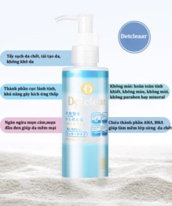 Gel tẩy tế bào chết Detclear Bright & Peel Mix Fruits 180ml có cấu trúc dạng gel đây là một loại tẩy tế bào chết dạng lột, giúp tác động sâu đến lớp biểu bì dưới da, loại bỏ hoàn toàn các tế bào chết, bã nhờn mang lại hiệu quả làm sạch da tối đa. Hơn nữa, gel tẩy tế bào chết có dạng gel nên sẽ không gây đau rát hay làm tổn thương đến da như các sản phẩm dạng hạt, rất thích hợp với làn da khô/hỗn hợp thiên khô hay làn da dễ bị tổn thương.