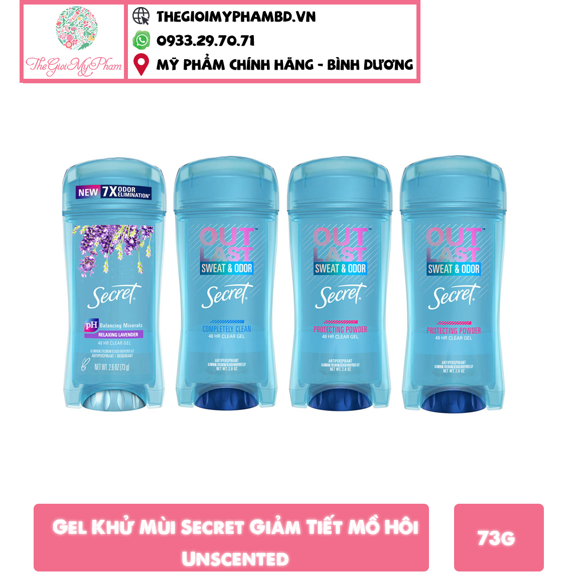 Gel ngăn tiết mồ hôi và khử mùi nữ dài lâu Secret Outlast Clear Gel, Protecting Powder scent 73Gr nhập khẩu từ Mỹ, tăng hiệu suất và bảo vệ cơ thể khỏi mồ hôi và mùi hôi với lá chắn vô hình hiệu quả suốt 48 giờ