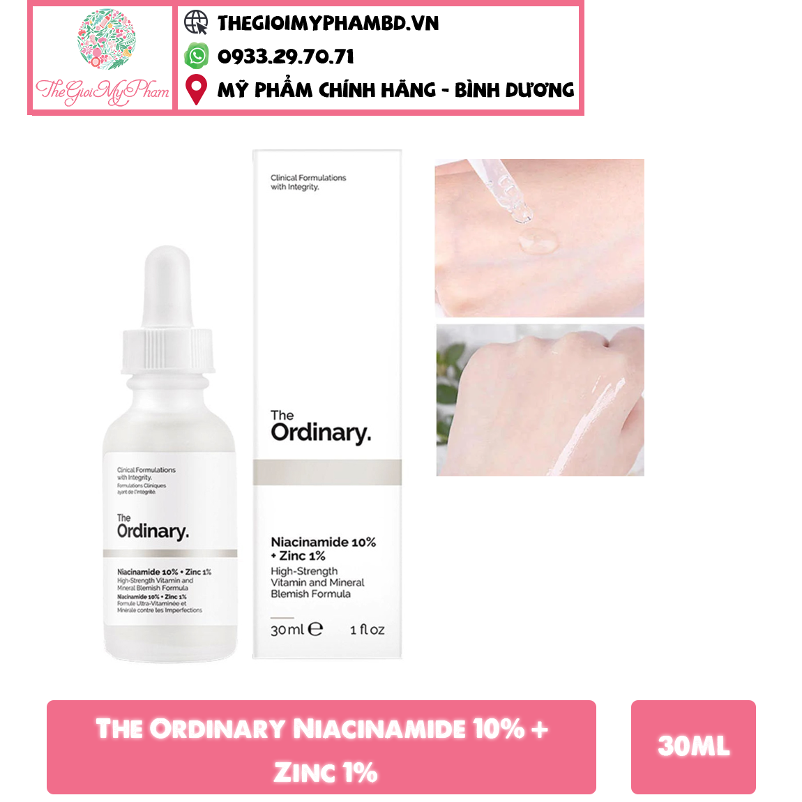 Tinh Chất Giảm Mụn & Mờ Thâm The Ordinary Niacinamide 10% + Zinc 1% 30ml