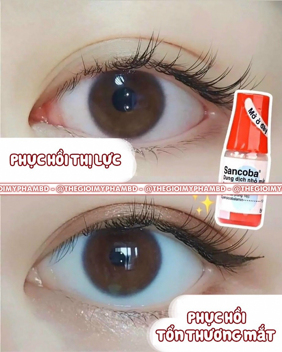 Thuốc nhỏ mắt Sancoba là thương hiệu Santen tại Nhật, được điều chế an toàn với tá dược Cyanocobalamin giúp làm giảm mỏi mắt, cải thiện tình trạng mờ mắt, rối loạn điều tiết, mệt mỏi do làm việc, học tập hay ngồi máy tính trong nhiều giờ.