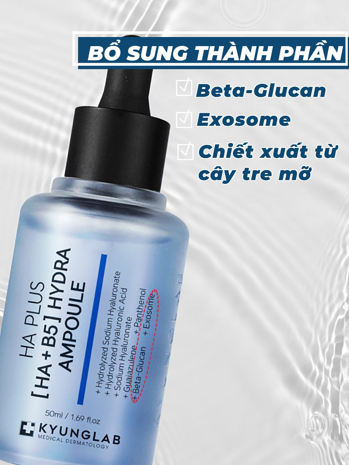 Kyung Lab Tinh chất dưỡng ẩm HA Plus (HA+B5) Hydra Ampoule 50ml (phiên bản nâng cấp) với khả năng cấp nước đa tầng, hỗ trợ phục hồi và làm dịu các thương tổn trên da. Giúp da luôn căng bóng, mịn màng.