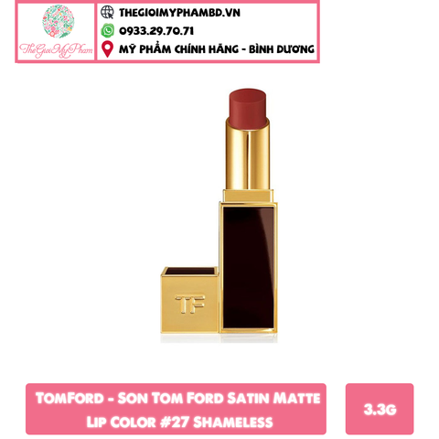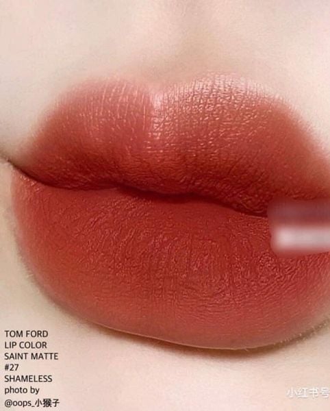 Sắc đỏ gạch của thỏi son Tom Ford 27 Shameless được tạo nên từ 3 sắc son chỉnh, gồm: Đỏ + cam + nâu. Trong đó sắc đỏ và nâu chiếm ưu thế, sắc cam phụ đạo giúp màu son thêm một phần tươi trẻ, bớt đi vài phần già dặn, phù hợp với nhiều lứa tuổi hơn.