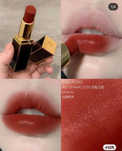 Son Tom Ford 27 Shameless còn cho chị em thêm một lựa chọn hoàn hảo mới về một màu son đỏ gạch đúng chuẩn, vừa quyến rũ lại vừa trầm ấm, nổi mà không quá phô trương, giống như sự khiêm tốn đến từ một người phụ nữ thông minh và thành đạt, vô hình chung luôn khiến người đối diện phải ngước mắt ngắm nhìn.