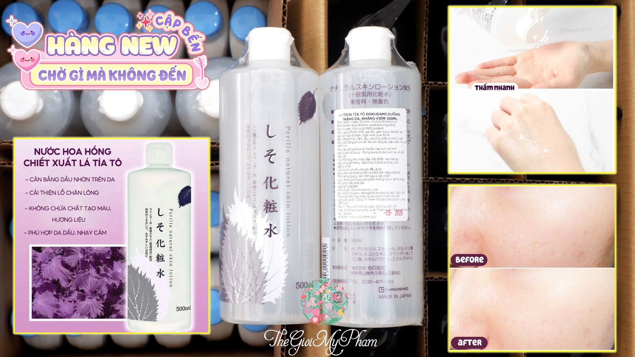 Nước Hoa Hồng Tía Tô Dokudami Perilla Natural Skin Lotion 500ml