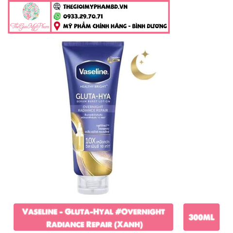 Sữa Dưỡng Thể Trắng Da Vaseline Gluta-Hyal 300ml Overnight Radiance Repair là dòng dưỡng ban đêm công thức cải tiến mới dưỡng sáng da ban đêm giàu tinh chất có tác dụng dưỡng trắng làn da body mạnh tương đương serum cô đặc dưỡng sáng sâu cho da vào ban đêm, giúp phục hồi da hư tổn cải thiện làn da xỉn màu trở nên rạng rỡ từ bên trong.