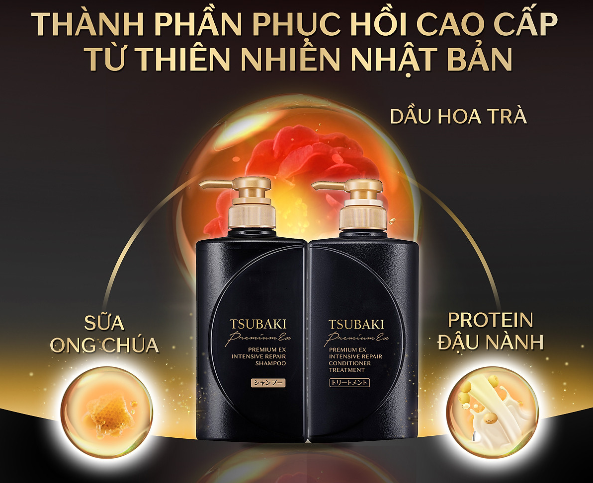 Dầu Gội - Xả Tsubaki Phục Hồi Hư Tổn Chuyên Sâu Premium Ex Intensive Repair Treatment ứng dụng công nghệ thẩm thấu độc quyền của Shiseido giúp dưỡng chất hấp thu nhanh và sâu vào trong lõi tóc, nuôi dưỡng cho mái tóc khỏe mạnh và bóng mượt như vừa được dưỡng tại Salon Nhật về chỉ với "0 giây chờ đợi"!