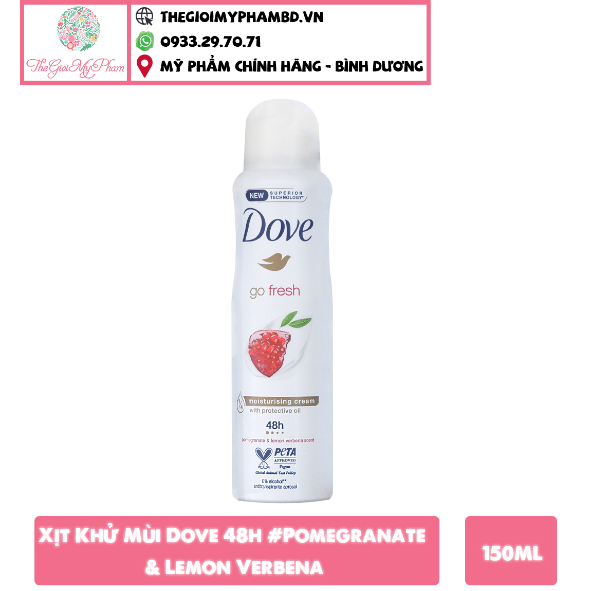 Xịt khử mùi Dove Go Fresh Pomegranate Lemon Moisturising 48h Vega tạo hương thơm tươi mát giúp bạn tự tin suốt 48 giờ. Đặc biệt có công dụng làm trắng da chỉ sau 7 ngày. Công thức chứa 1/4 hàm lượng sữa dưỡng ẩm và bổ sung vitamin E giúp phục hồi và nuôi dưỡng tế bào da bị sậm màu, đồng thời cung cấp độ ẩm cần thiết cho vùng da dưới cánh tay luôn mềm mịn.