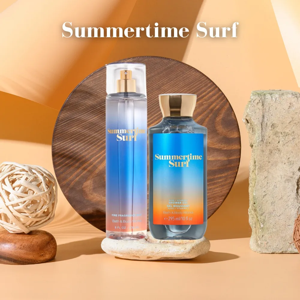 Xịt Thơm Bath & Body Works Summertime Surf sẽ là một mùi hương gợi ý cho cô nàng/ anh chàng nào suốt ngày đòi đi biển là đây. Đây là một sự pha trộn đầy ngọt ngào và hoàn hảo giữa hương vani dịu ngọt kèm sự mát mẻ từ dửa và chút mộc mạc từ cát biển.