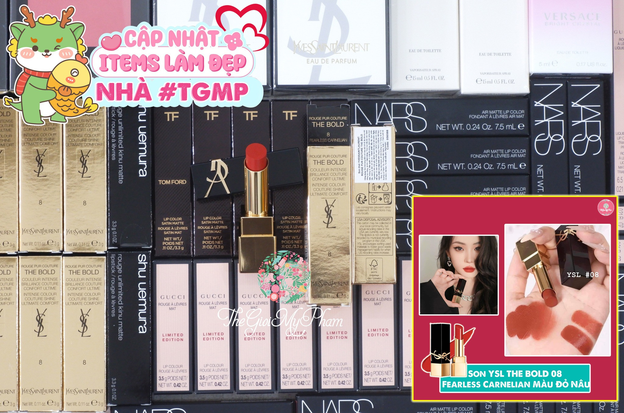 Son YSL The Bold 08 Fearless Carnelian – Màu Đỏ Nâu Ánh Cam nịnh môi dã man, chỉ cần những đường son cơ bản, nhan sắc của nàng đã thăng hạng đáng kể.